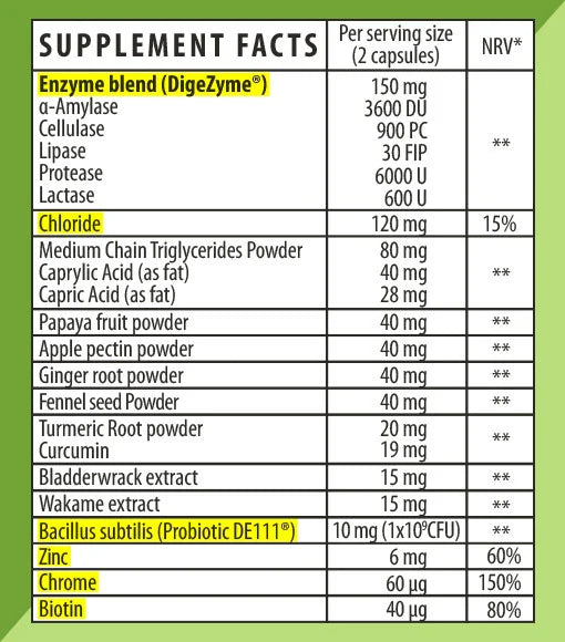 DigeZyme® aids in the digestive process, DE111® probiotic focuses on maintaining a healthy balance of gut bacteria, and Biotin supports skin and hair health. Together, they provide a safe and effective solution for maintaining optimal digestive health.