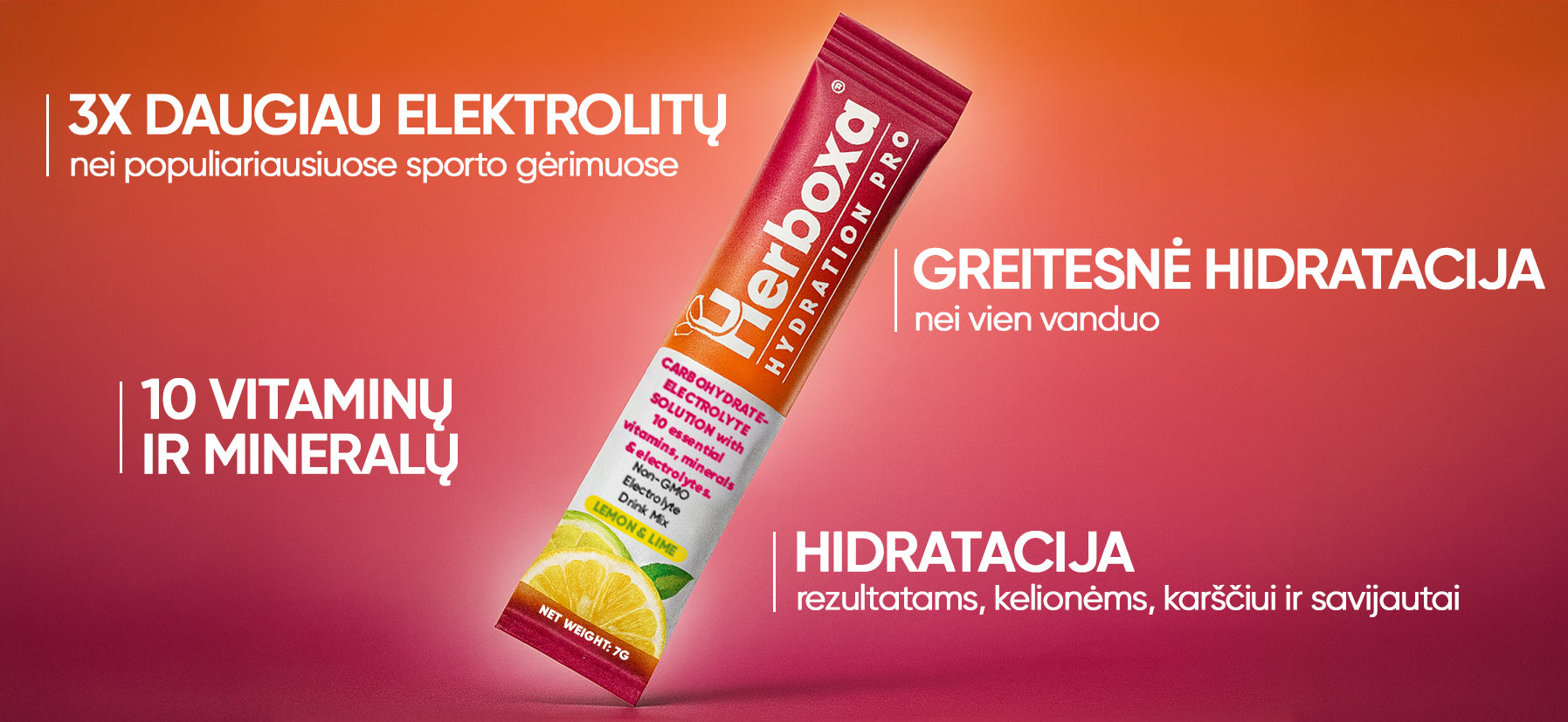 Herboxa® Hydration Pro yra subalansuotas elektrolitų ir greitai įsisavinamų angliavandenių mišinys, padedantis jūsų organizmui efektyviau įsisavinti vandenį nei geriant vien tik jį.