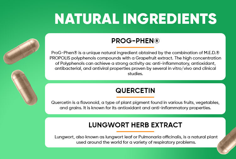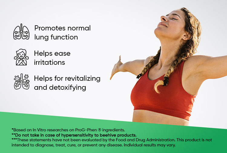 Plautės ekstraktas detoksikuoja, kvercetinas malšina alergijas, o ProG-Phen® kovoja su uždegimais. Kartu jie siūlo saugų ir veiksmingą sprendimą kvėpavimo takų sveikatai.