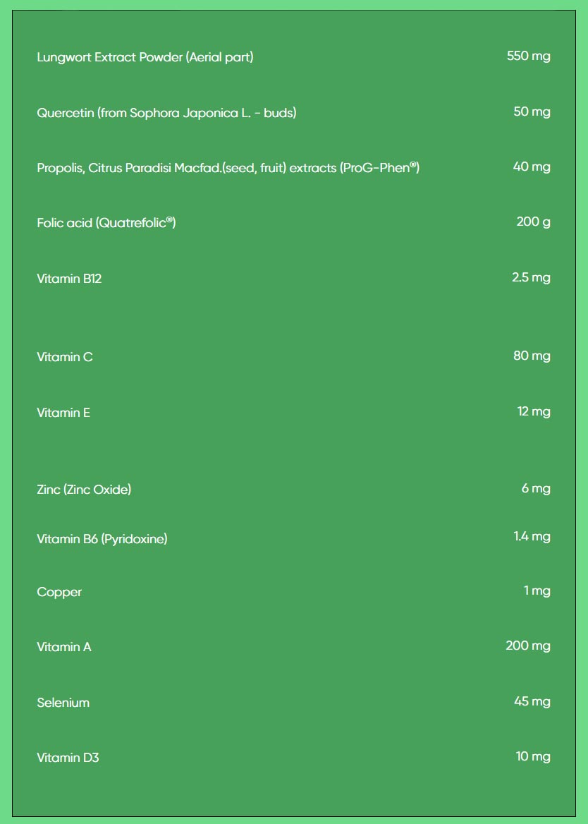 Štai kodėl sukūrėme Herboxa® Lungwort- tai papildas su kliniškai patvirtintais ingredientais – plautės ekstraktu, kuris padeda išvalyti kvėpavimo takus, kvercetinu, kuris palengvina alergiją, ir ProG-Phen® dėl jo priešuždegiminių savybių.