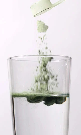 Įdėkite vieną šaukštelį Herboxa®SUPER GREENS į 250 ml vandens